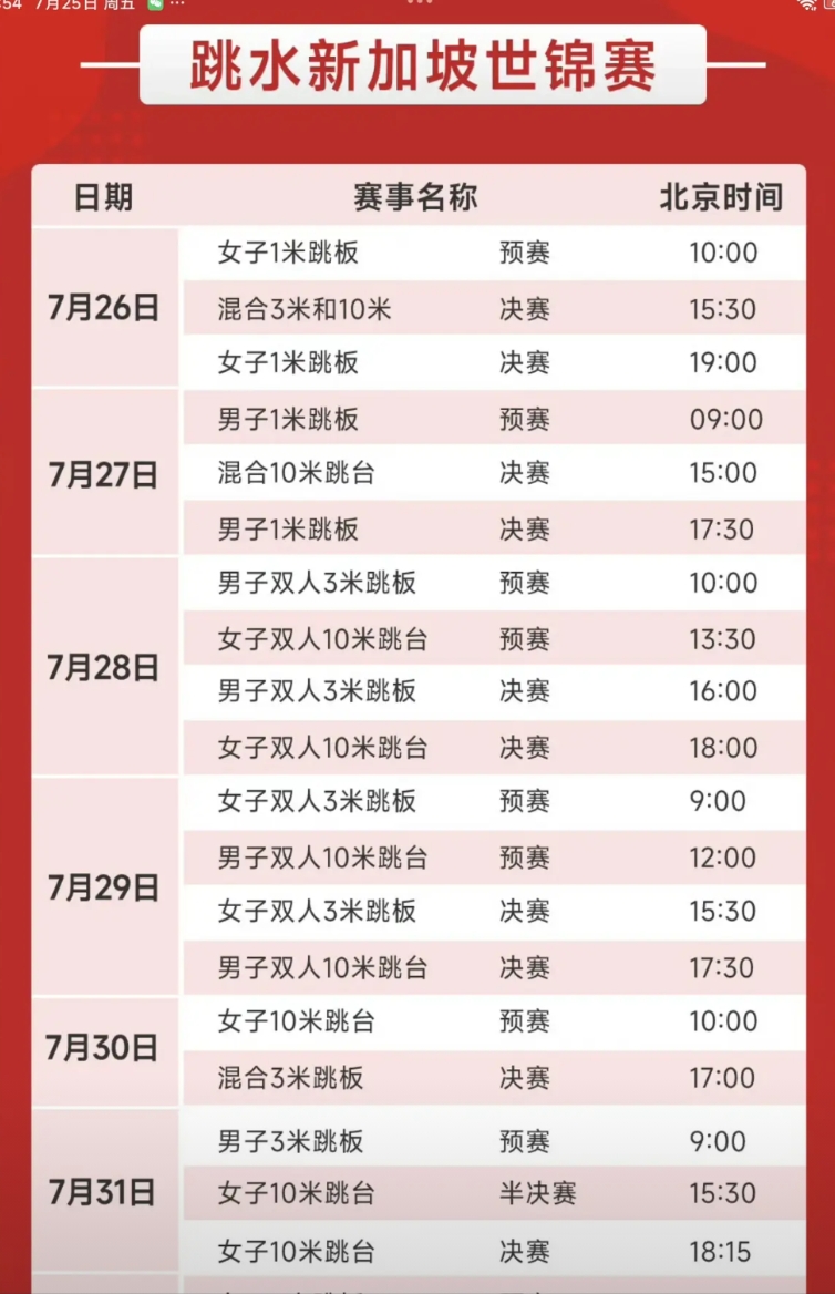 新加坡世锦赛比赛时间 :2025年7月26日至8月3日