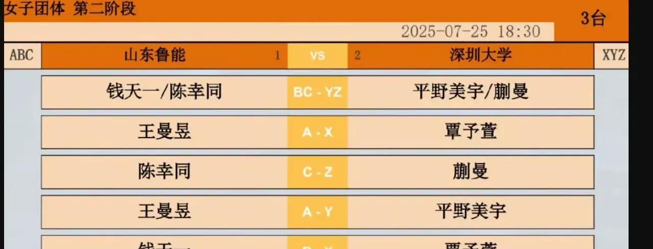 第三盘比赛马上开始! 这是2025乒超联赛第二阶段女团常规赛,目前山东鲁能1-1