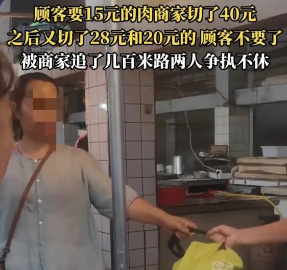 “我就要15块钱的肉,你怎么切了40块?”湖南,某肉铺前,一位中年女子拎着包,满