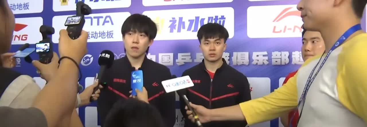 王楚钦:咋唰唰唰突然冒这么多话筒。 刚刚结束的比赛中,山东魏桥3-0战胜汕头明润,赛后采访时,当王楚钦、林昀儒、梁靖崑走出来时,突然就冒出来很多话筒,楚钦都不知道该看哪一个了。梁靖崑刚打完第三盘比赛,还没来得及穿上外套就来采访了。 他们三个往那一站,基本上都是王楚钦先说,刚刚看了李武军对王楚钦的采访,对于和徐海东的比赛,王楚钦说海东今天确实发挥的好,自己能赢下比赛还是很开心吧。今天梁靖崑是打三单,一场男双和一场单打,两场都赢了,站在那时看到头上还有汗。 混采区的采访结束后,楚钦还问还有采访吗?记者说没有,然后他们三个开心的下班了。今天山东魏桥只有一场比赛,不过下午他们肯定还要继续训练,备战明天的比赛,继续加油!