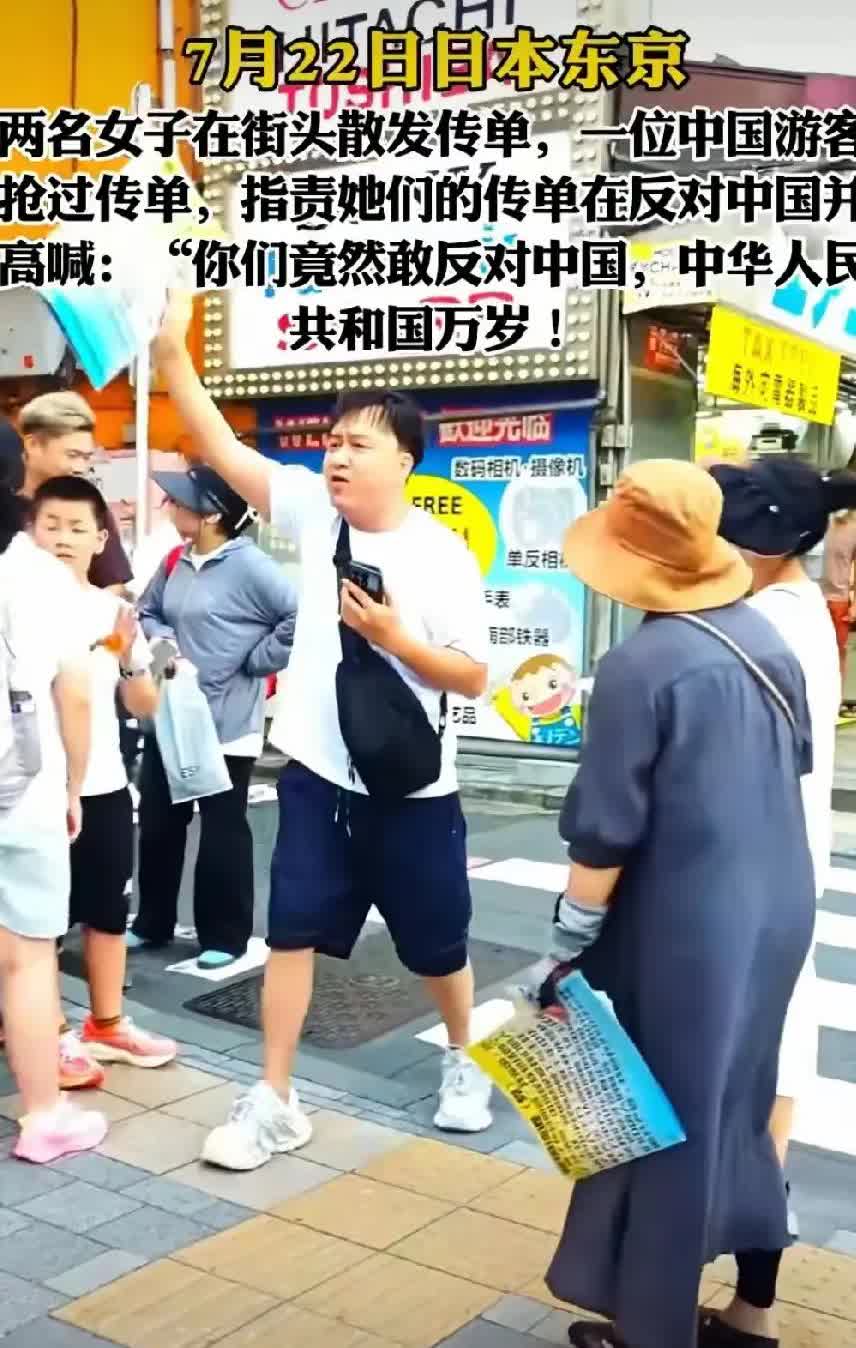 热血!中国小伙东京街头怒怼反华者,在日本东京街头,竟有两名女子公然散发反华传单,明目张胆煽动仇视中国的情绪。 这一幕,恰好被咱中国去旅游的小伙撞见。小伙子瞬间血气上涌,大步冲上去抢过传单,对着那俩女子厉声斥责,吼出的“你们竟敢反对中国,中华人民共和国万岁”,简直震得人心里发烫! 想想日本,对当年侵华的累累罪行,一直避而不谈、拒不道歉,还建靖国神社供奉战犯,还有人连反映731暴行的电影都要阻挠。说什么太残忍,太血腥,真实场景比电影残忍十倍,可咱中国人,不管走到哪儿,爱国的骨头硬得很!这小伙的勇气,就是咱中国人面对恶意时的态度, 谁敢抹黑祖国,咱就跟他死磕,用最刚的姿态,捍卫祖国尊严,让那些反华势力知道,咱中国儿女的爱国心,永远是他们越不过的长城 !哪怕身处异国,也让世界看见:中国尊严,不容践踏;爱国热血,永远滚烫!小伙子为你点赞👍👍👍