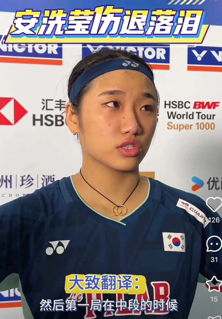 安洗莹赛后谈到自己退赛时忍不住哭了,原来她在第一局比赛公开赛就感觉不太舒服,但是还是在坚持,到中段的时候就很受影响了,为了不让伤势更严重,她不得不在第二局6:11落后的时候选择退赛,看得出来安洗莹还是有些不甘心,夜很伤心,但是她退赛确实是明智的选择,毕竟马上就要世锦赛,在世锦赛前她必须要把状态恢复到最佳。