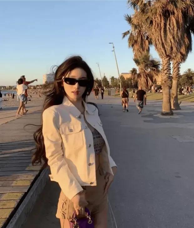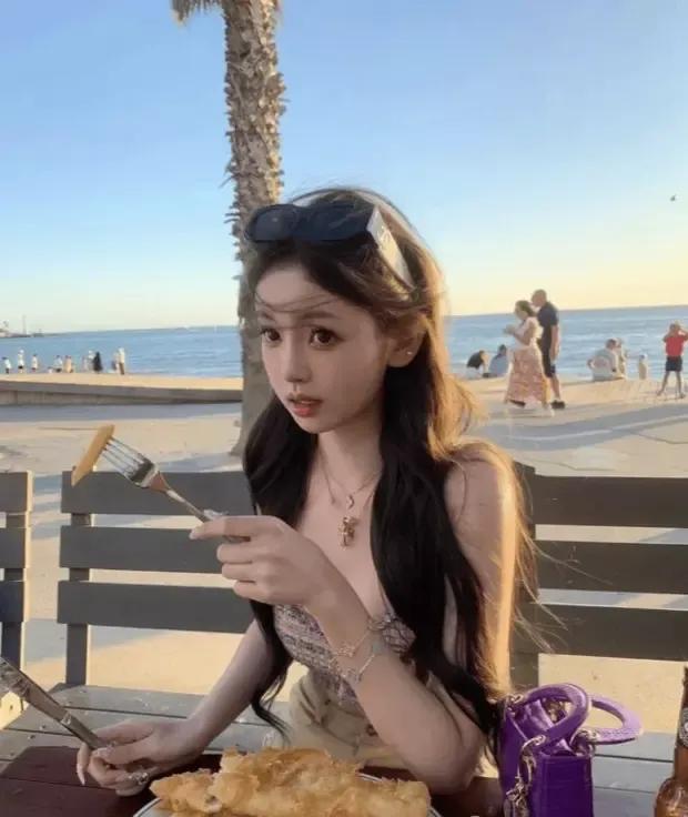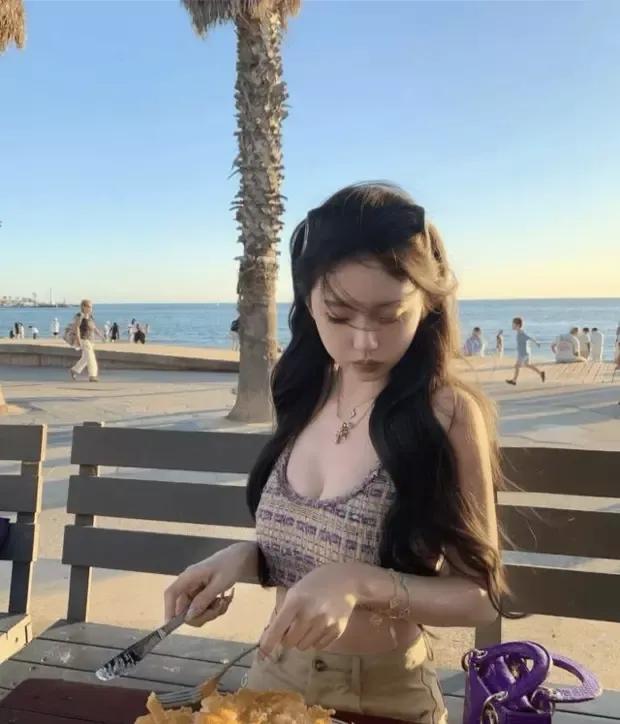 王思聪女友懒懒晒傲人身材,海边吃海鲜吸睛,难怪王思聪不换女友