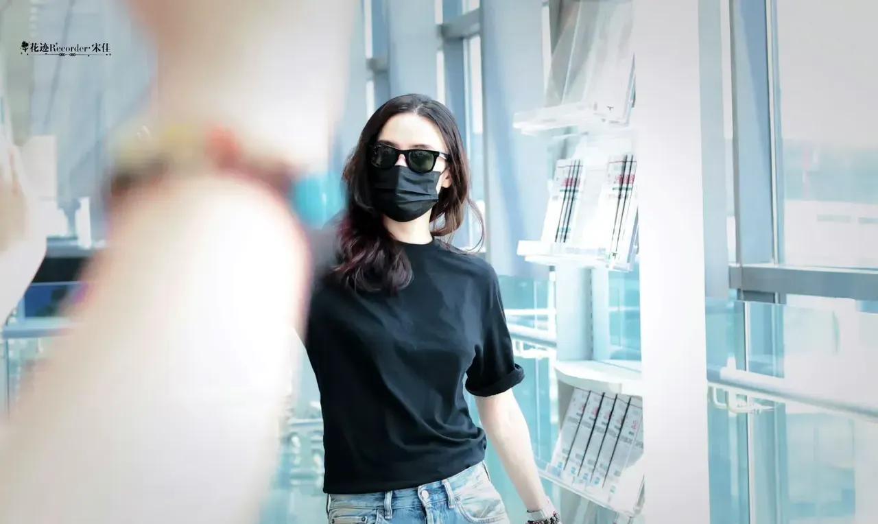 宋佳太美啦!黑色的上衣,蓝色的牛子裤,虽然戴着口罩,依然看出来她很优雅,妥妥的女