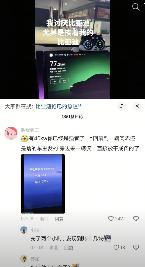 还是劝其他车主充电时候远离汉唐L或者比亚迪的车,你吸不过他的。 汉唐L重则一台车