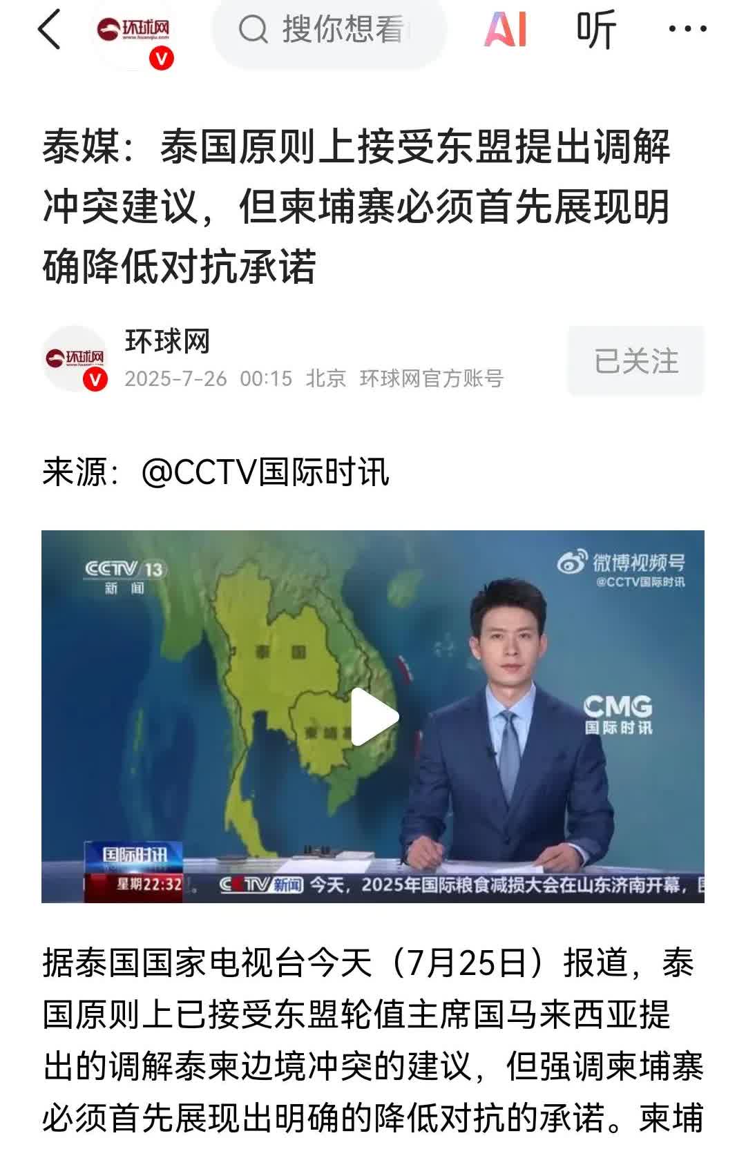 感觉国际调解院设立的有点鸡肋了,俄乌冲突,中东乱局都调解不了,现在柬泰冲突,泰国