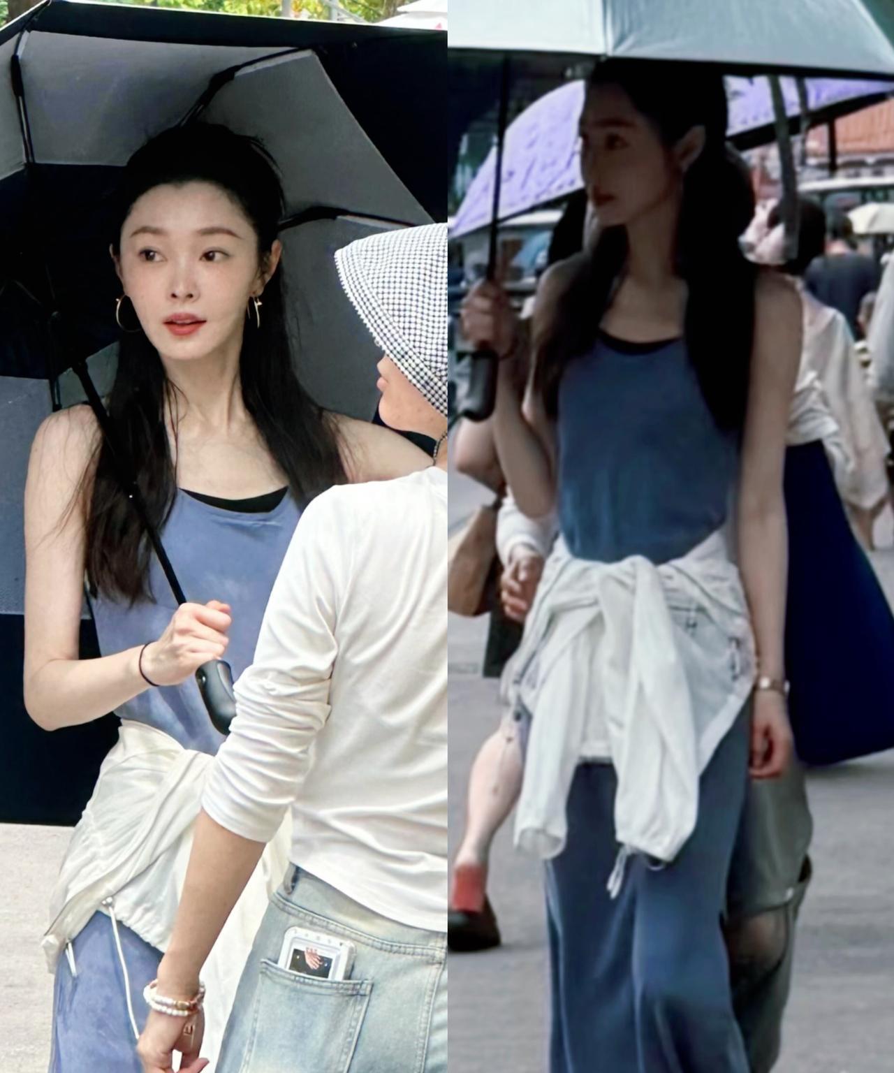 网友在泉州路上偶遇宋轶,看到宋轶穿着吊带裙凉鞋,整一个优雅有气质,宋轶本人也是又白又美又瘦,撑着一把防晒功能很强的伞,难怪这么白呢。