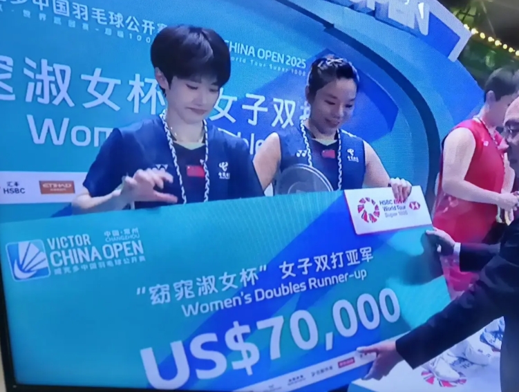 中国羽毛球公开赛奖金的确很丰厚,刚刚结束的女双冠亚军颁奖显示,亚军70000美元