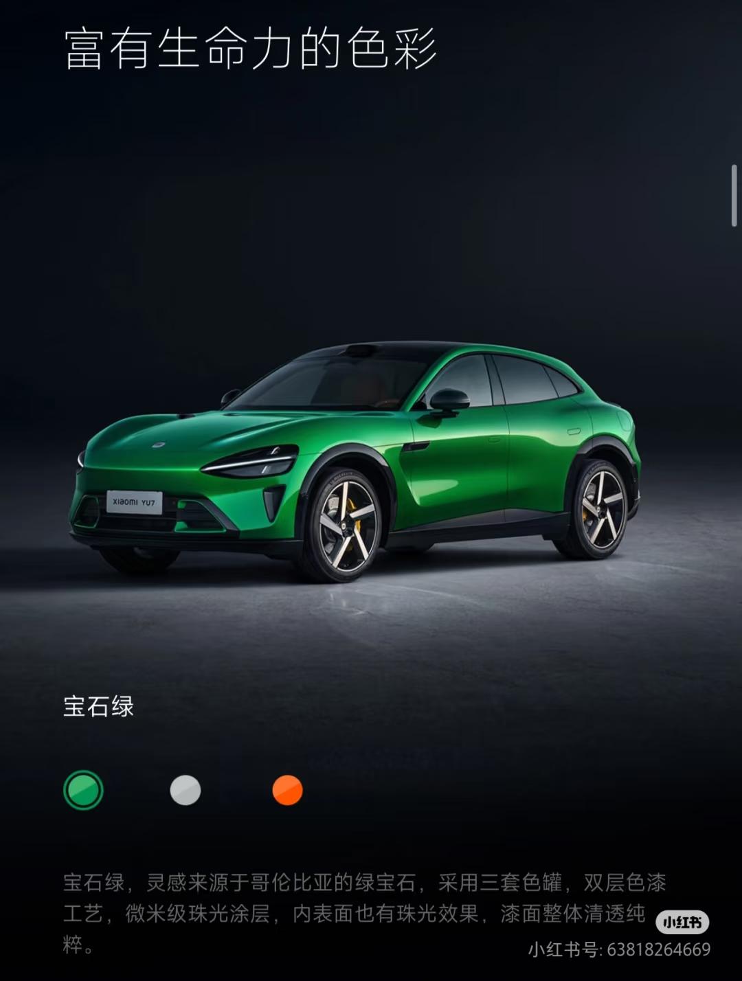 1.极客科技党——激光雷达+全场景AI,智能体验甩对手三条街! 2.性能发烧友——3.2秒破百+空气悬架,红绿灯起步教超跑做人! 3.家庭品质派——850km续航+航母级空间,带娃自驾游说走就走! 4.商务精英层——杜比座舱+隐形大佬气场,接客户比BBA更有排面! 5.未来出行控——L3硬件预埋+小米生态,抢先十年开上“科幻座驾”! 小米YU7,不仅是一台车,更是移动的智能生活终端,你的战斗女神阿丽塔。