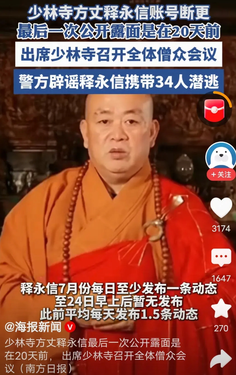我有一手情报!!!我不是在打广告,我看到在知~呼上搜《永信之罪恶》有位博主整理了整个过程,据说是贪了好几百亿,还有释永信曾在寺院内强奸了一名尼姑!!花和尚释永信被情妇勒索 400万的警方笔录曝光,曾让大三女生,两次为其打胎大家感兴趣的可以去自己看看,里面还有聊天记录,具体还是等官方通报
