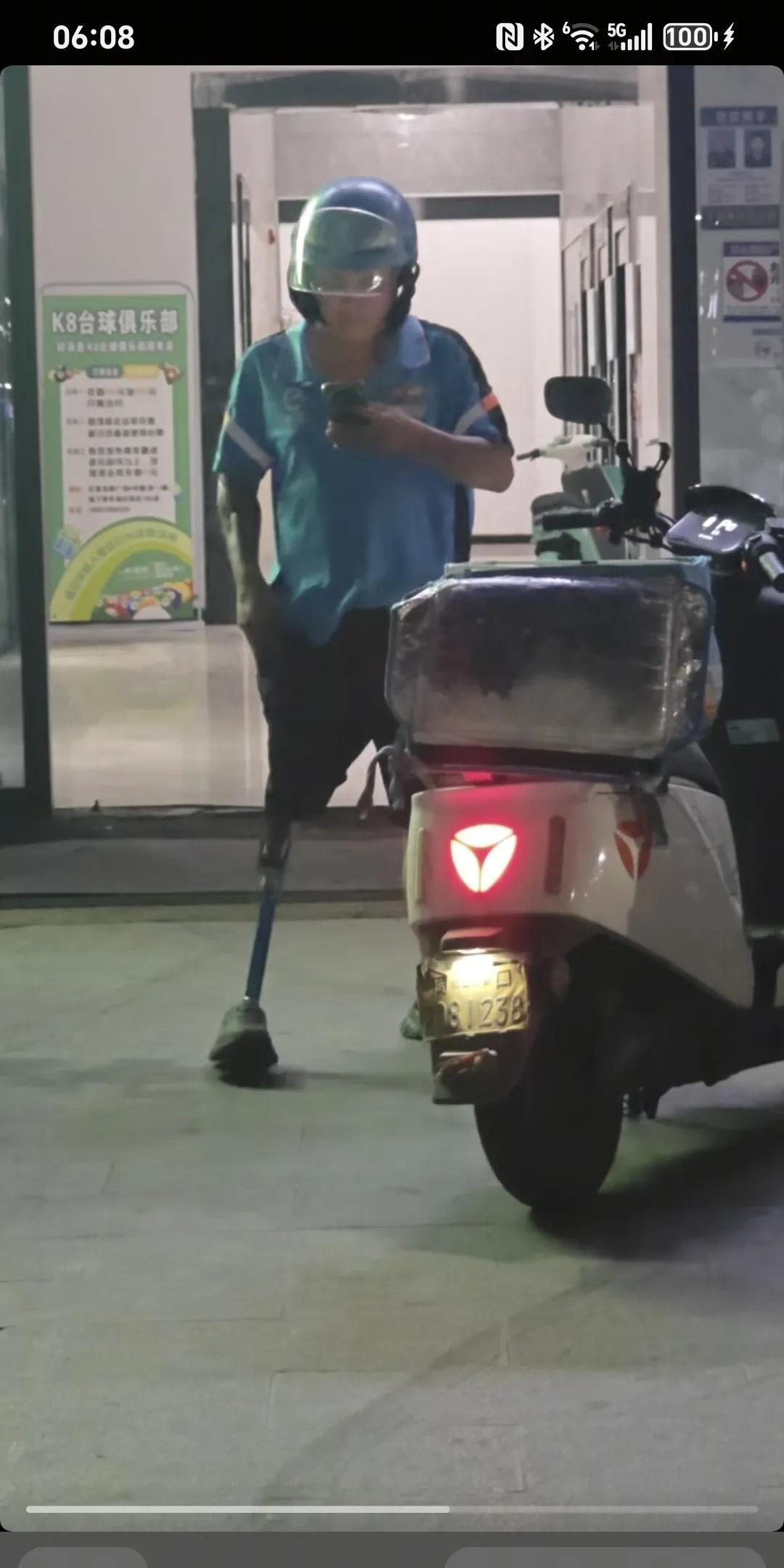 大哥真男人~ 这个“残疾骑手”为了生活太不容易了,一边拖着沉甸甸的假肢,走路一歪一瘸的,晚上还在送外卖,真让人心酸。希望大家对他们能互相多一些包容们。 麻烦大家这段时间点外卖如果超时请大家多包容一点,因为暑假会有很多大学生兼职不熟练,还会有年纪大了的爷爷,残障人士,而且最近天气很热他们都很辛苦的,虽然并不起眼很平凡但是我觉得这是一个特别值得尊敬的工作,希望大家能多包容一下外卖小哥,谢谢大家! 建议外卖平台出一个残疾人认证,用户能直接看到,减少弱势群体的抽佣,让他们得到更多的关心。