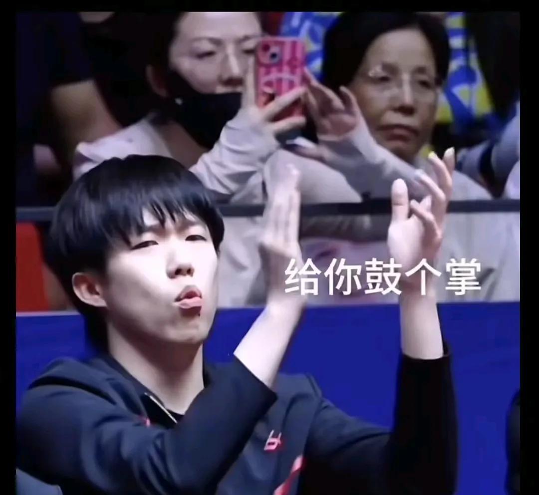 王楚钦最新表情包来了! 厦门乒超第二阶段打了三天,王楚钦场场都到,今儿没上场也老