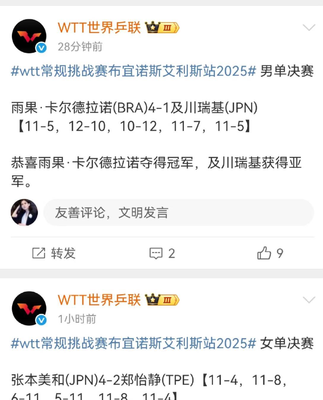 张本美和夺冠后感谢爸爸和大藤沙月 张本美和发文感谢爸爸: WTT常规挑战赛布宜