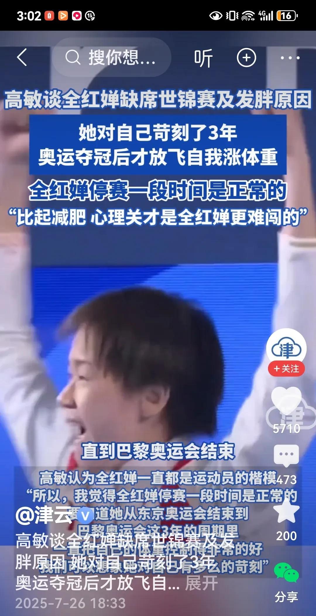 新加坡世锦赛全红婵缺席又引热议,她“长胖”的消息也备受关注。其实全红婵胖了是自然