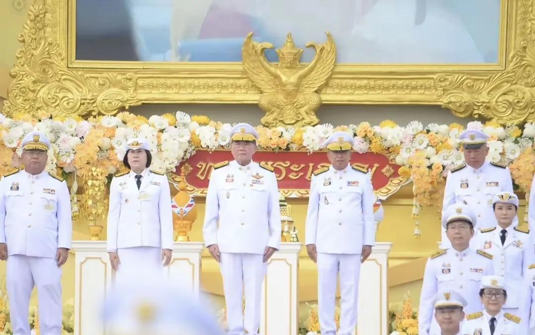 泰国内阁成员在曼谷皇家田广场出席仪式,向拉玛十世国王陛下表达生日敬意。 活动中,