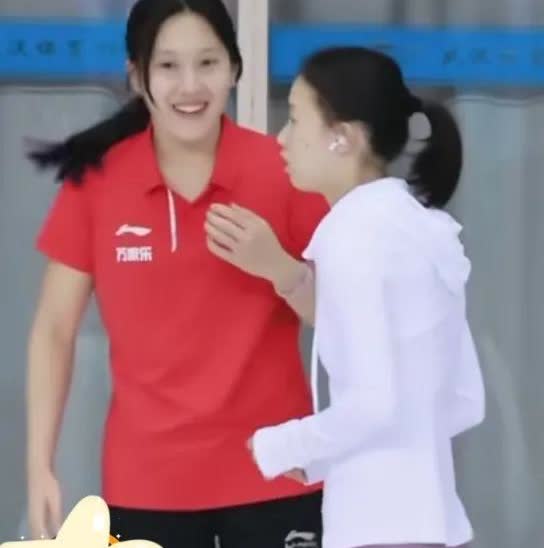 真是女大十八变,越变越好看。现在,扎马尾束的陈芋汐,不但俏丽,清新,灵秀,更显成熟和知性。小丫头已经是大姑娘了,这孩子成熟在思想和心智上,不但听话,还非常认真刻苦,知道怎样去学习,去努力,不但自己优秀,还带领师弟师妹们一起向前冲。和她说话的美女是谁,看着像教练陈若琳,好像又不是。