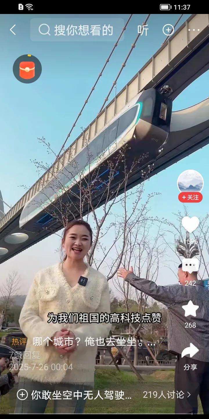中国的高铁发展迅猛,如今又有了一种悬挂在空中的火车,并且这种火车是270度观光列车,这种列车一旦出现,想必会有许多人前去体验。