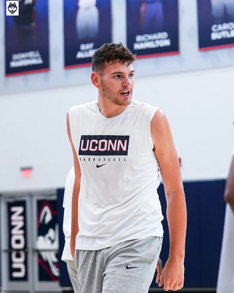 康涅狄格大学官方更新Ins,晒出一组开拓者球员多诺万-克林根的训练照与球迷分享。