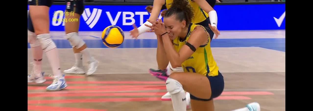 女排世联赛总决赛金牌战,意大利女排第二局25-18胜巴西女排,前两局大比分1-1