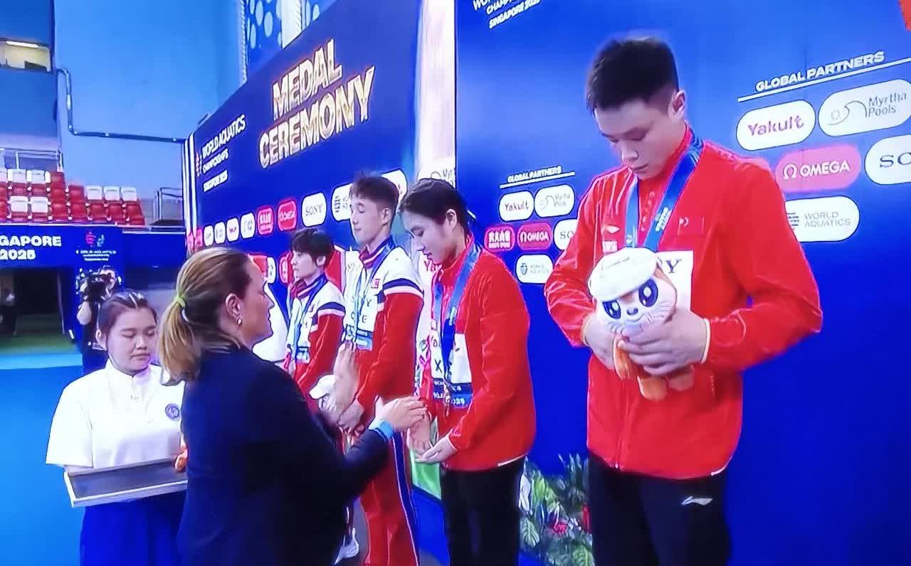 0.06分险胜! 刚刚结束的2025世界游泳锦标赛跳水10米跳台男女混合决赛。 中国选手朱勇鑫/谢佩玲以0.06分极微小优势领先第2名朝鲜组合,夺得金牌。 中国跳水队昨天丢了一块女子1米板金牌,今天又险丢第二块金牌。 “梦之队”遭遇挑战!狼来了!