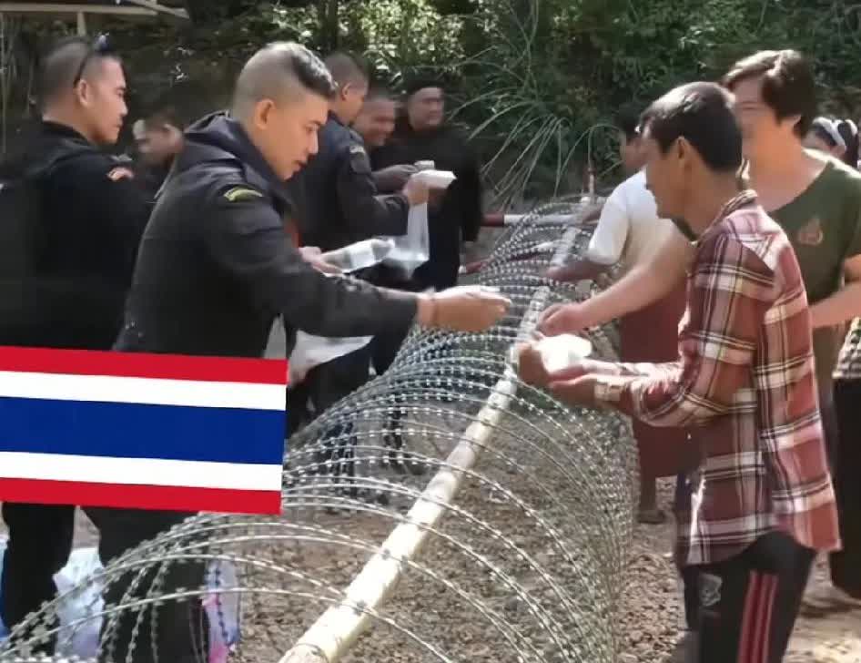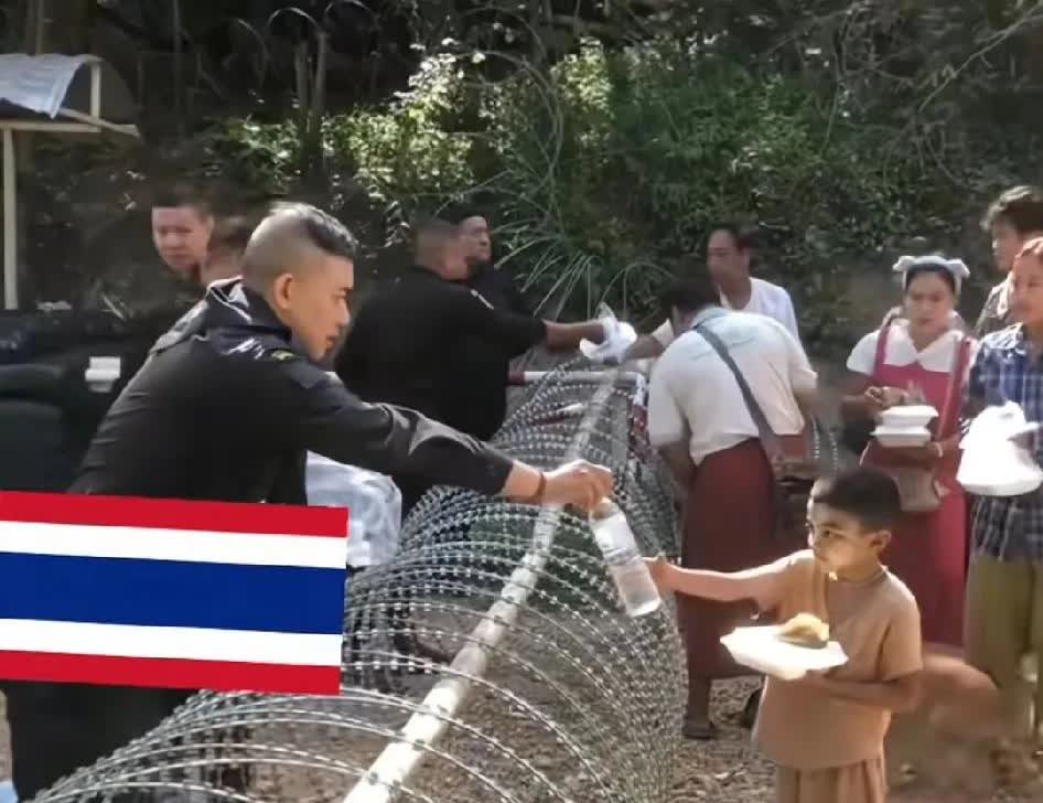 泰国黑衣特种部队,为柬埔寨平民发放食物和水,泰军表示不打平民只打军事基地 打仗