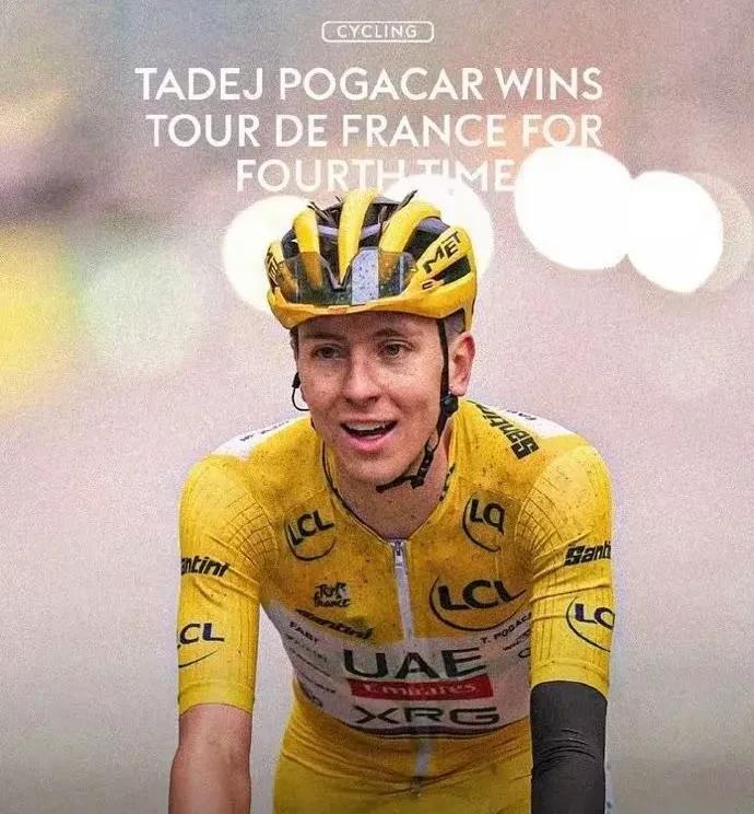 第112届环法自行车赛落幕,经过21个赛段全长3301.9公里的比拼,阿联酋航空车队的斯洛文尼亚传奇车手波加查以总成绩76小时0分32秒成功卫冕,也是第四次夺得车手总冠军,温格高和利波维茨分获二三名,波加查还赢得了黄衫和斑点衫,米兰赢得绿衫,利波维茨赢得白衫。