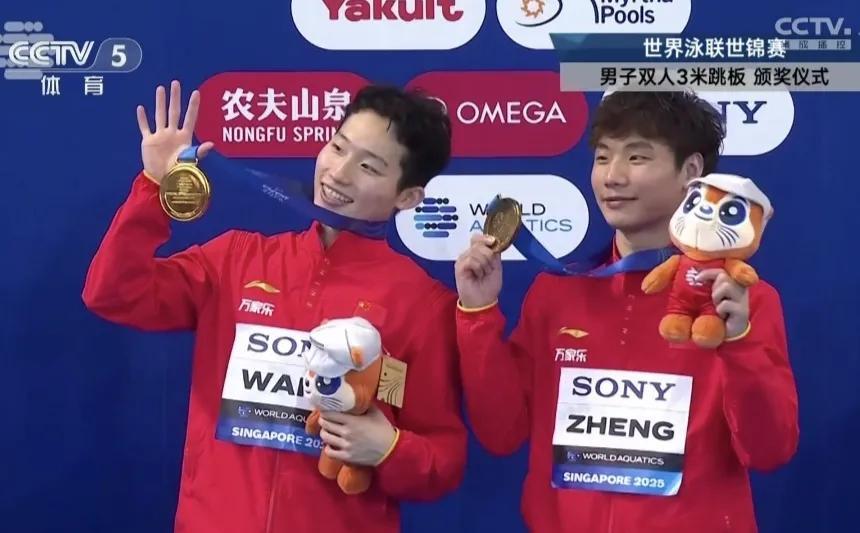 配对仅两个月!双源组合夺取世锦赛跳水第四金 7月28日下午,世锦赛跳水男子双人3米板决赛,王宗源/郑九源最后一个出场。 预赛,双源组合以总分445.83分的绝对优势占据第一。 共八对组合进入决赛。前两轮为规定动作,后四轮为自选动作。 第一轮,双源组合跳出51.00分,其他三对组合得分49.20分。 第二轮,双源组合跳出53.40分,总分104.40分,第二名总分97.80分。差距拉开。 第三轮,自选动作开始。双源组合的优势凸现出来,跳出86.70分,总分191.10分。第二名总分178.62分。双源组合领先12.48分。 第四轮,德国组合动作完全失败,零分。双源组合发挥出色,跳出91.35分,总分282.45分,比第二名高出19.17分。 第五轮,双源组合跳出85.68分,总分368.13分。第二名总分353.34分。 第六轮,也就是最后一轮。双源组合跳出全场最高分99.18分,以总分467.31分夺冠。配对仅两个月的双源组合,交出完美的答卷。这也是郑九源夺得的第二金。 墨西哥组合以总分449.28分名列第二,英国组合以总分405.33分位居第三。