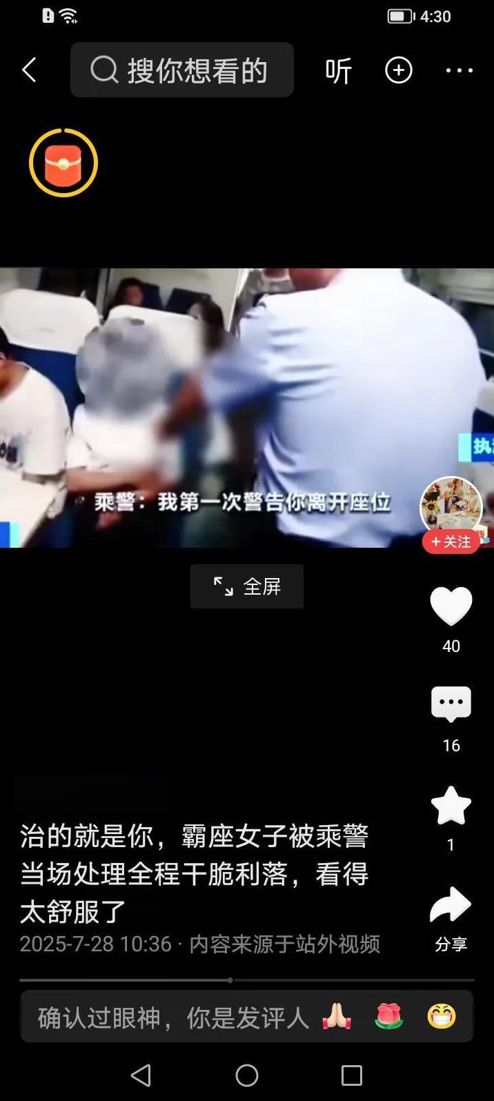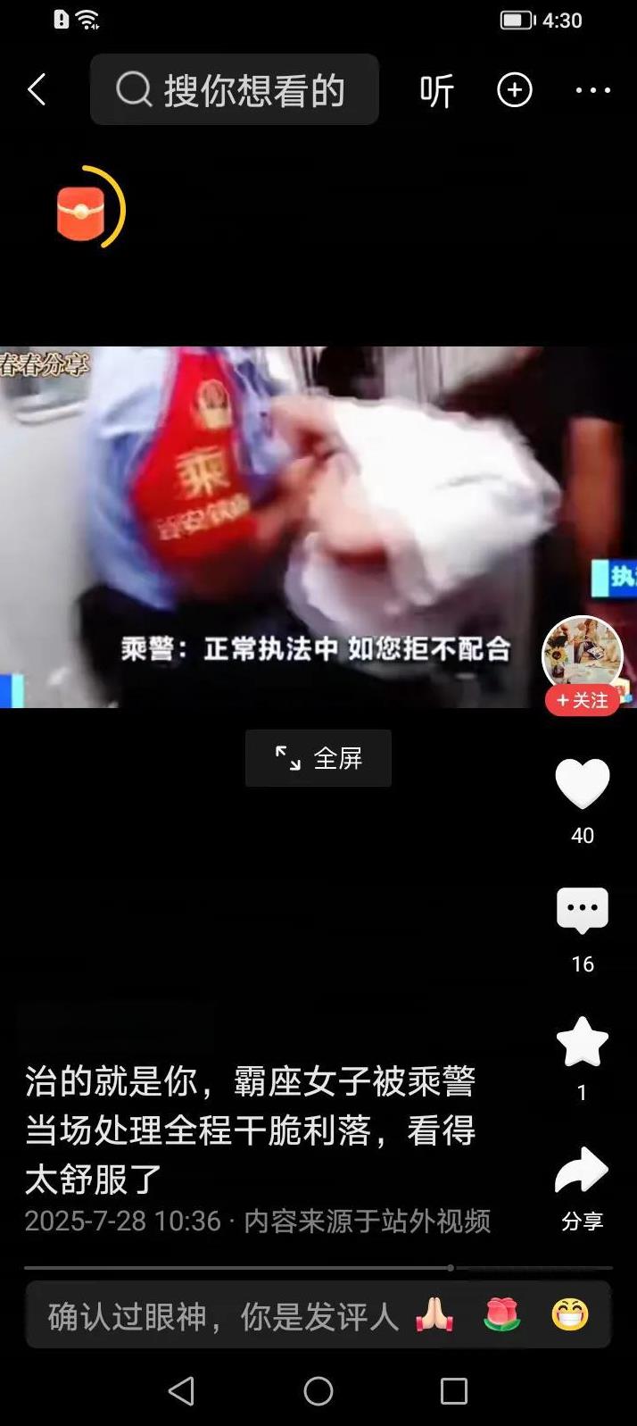 在火车上,有一名女子拒绝让出霸占的他人座位,抗拒执法。铁路警察上前问询,此女子态