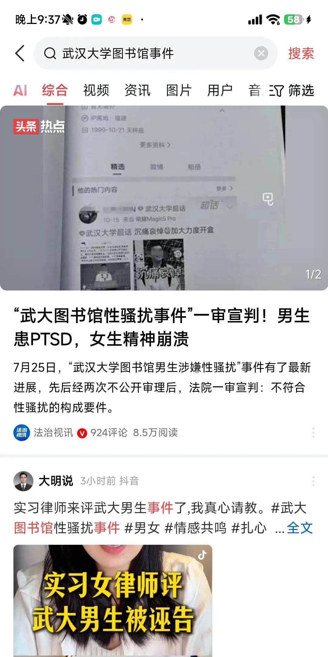 武汉大学的处境确实有点尴尬。武汉大学图书馆事件一审宣判,男生肖某对女生杨某并不构成性骚扰,反过来说,武汉大学当年急匆匆的处分决定是错的,而杨某也涉嫌诬告。武汉大学迟迟不表态,估计在等二审结果,不过还会有二审吗?这件事情男生是因为瘙痒,法院对事实的认定应当是清晰明了的。这件事情对肖某及其家庭造成极其严重的影响,换个角度说可能毁掉了肖某的一生。而杨某那一段尖酸刻薄的话,也被网友广泛转发,目前估计心里也不好受。现在就看武汉大学态度了,大学要有大态度,是非过错要分明。#武汉大学# #教育# #大学#
