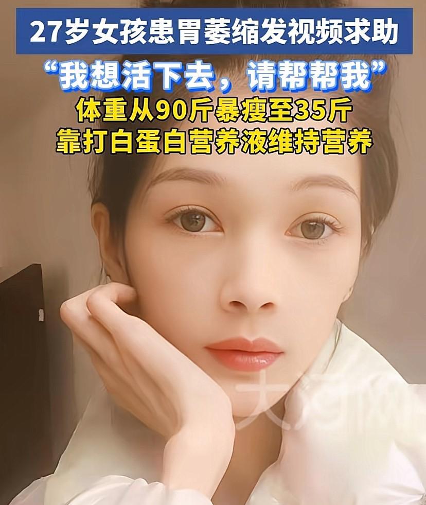 真的不敢想象!这么漂亮的一个女孩,会被疾病折磨成这样。胃萎缩导致女孩无法进食,只能靠营养液维持生命,体重从90斤暴瘦到35斤。 女孩子减肥还是要注意方法,不能只靠饿进行减肥,时间久了胃肯定有问题的,长期吃辛辣刺激食物,夜市喝个冰镇啤酒,这都是导致胃病的诱因。很多病是慢慢积累造成的,小病不当回事,早晚是要付出代价的~