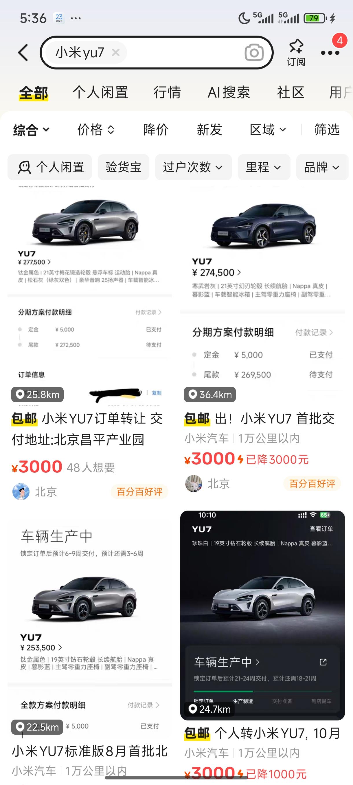 可能很多人都在纳闷,为什么在各大二手车平台出现了大量的小米YU7现车订单,大量为零公里,未上牌的小米YU7,而且几乎百分百都是首销加配的小米YU7 MAX版。 这批人好不容易抢到了,为啥要卖呢? 这其实一点都不奇怪,只要是需要抢,需要排队,很难购买到的东西,都会在二手市场大量出现,你回忆下,当初特斯拉model Y,早年的苹果新款手机是不是也是这个路径。 因为有利可图,所以就吸引了大量赚快钱的投机者,要解决这一问题,只要小米YU7解决了产能问题,投机者自然就消失了。 其实,这也是正常供需关系的体现,如果你着急提车,那么就在二手市场加一两万就能提到最新款,如果不着急,那就等一年呗。