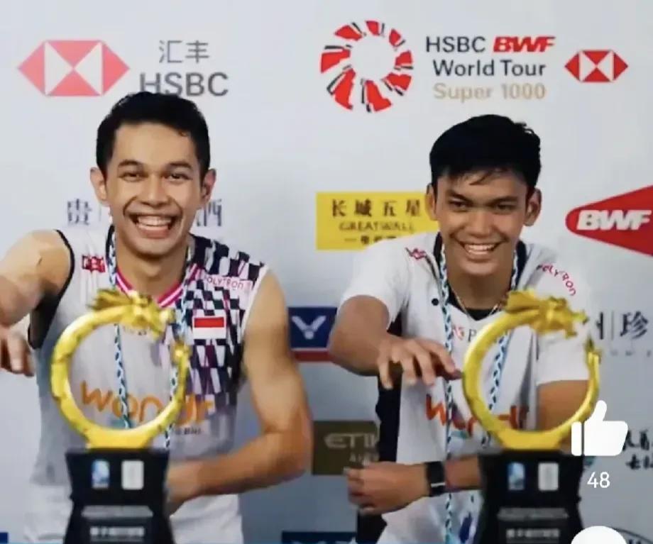 印尼的男双临时搭档阿尔菲安和菲克里在中国羽毛球公开赛连克塔曼/伊斯法哈尼、金元浩/徐承宰、梁伟铿/王昶、谢定锋/苏伟译四对名将,强势夺冠,两人不仅在赛场和颁奖仪式上热舞,回到家,阿尔菲安甚至还搂着奖杯睡觉。阿尔菲安的搭档本来是阿迪安托,但因为搭档的媳妇生孩子,阿尔菲安临时找菲克里搭档,不仅“拆散”了菲克里与毛拉纳的“飞毛腿组合”,也把自己的“双阿组合”变成了“双菲组合”,没想到意外以四个2-0连克强敌,特别是将本赛季已经连拿三冠的韩国强档金元浩/徐承宰也斩落马下,确实让人惊喜。