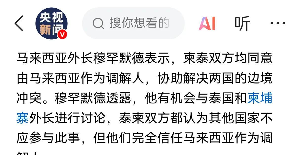 怪不得中国不出手,特朗普介入泰柬冲突后发现不对,人家根本不认 7月24号,泰国和柬埔寨在边境大打出手,当时包括美国在内的很多国家认为中国会在第一时间直接下场,甚至采取一些特殊的手段让战争马上停下来。因为东南亚距离中国太近了,中国不会允许东南亚发生大规模的战争。 不过时间已经过去了好几天,我国的做法一直是呼吁和平,一直是希望通过东盟解决问题。除此之外,没有给泰国或者是柬埔寨提供一枪一弹! 在这种情况下,7月26号美国下场,特朗普表示自己已经打电话告诉了泰国和柬埔寨的领导人,如果他们继续打下去的话,就没有办法和美国做生意了。稍后泰国和柬埔寨也表示原则上同意停火提议。 猛然一看,感觉还是美国人的效率更高一些,但从现实情况来看,特朗普的调解冲突策略实际上已经失效了。一方面是现在泰国和柬埔寨的战争并没有实质性地停止下来,另外一方面是第3个国家已经介入了,但是这个国家并不是美国,而是人家马来西亚。 7月28号泰国和柬埔寨的领导人将会齐聚马来西亚,共同对现在的战争问题进行双边谈判。并且表示,两国都共同认同马来西亚来当这个调解人,不希望其他国家介入进来。 泰国和柬埔寨之所以这样做很明显是不想让自己之间的战争成为大国博弈手中的棋子,自家的问题自家解决,在东盟内部处理就可以了。至于其他的国家的介入和调解,人家根本就不认。 这个时候我们在对比我国和美国,对于这两个国家战争的态度和立场,以及一些实际的做法的时候,就会明显发现,还是咱妈看得透,稳得住。#头号创作者激励计划#