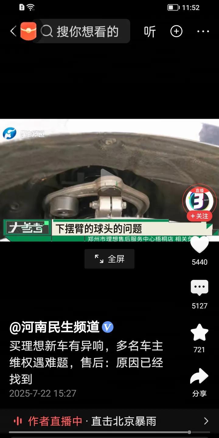 河南有位车主在购买理想汽车一个月后,下摆臂出现异响。记者与这位车主前往维修店维修
