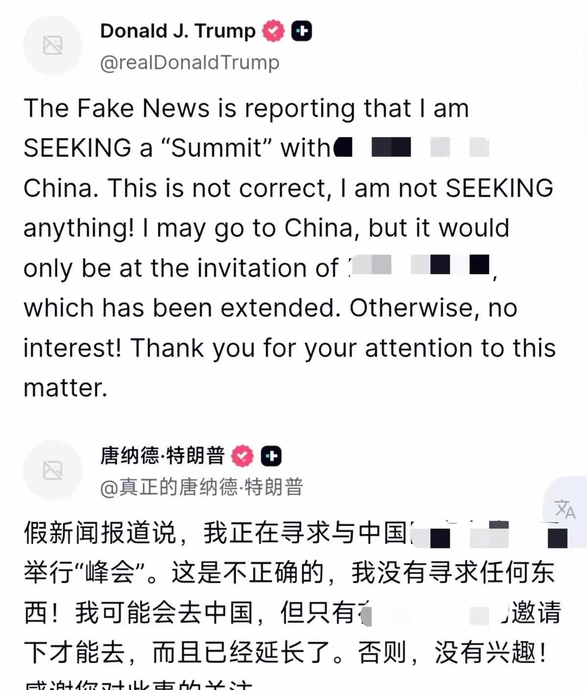 特朗普公开“辟谣”求中国发邀请函访华。 对于唐纳德.特朗普来说,最近似乎出奇的顺