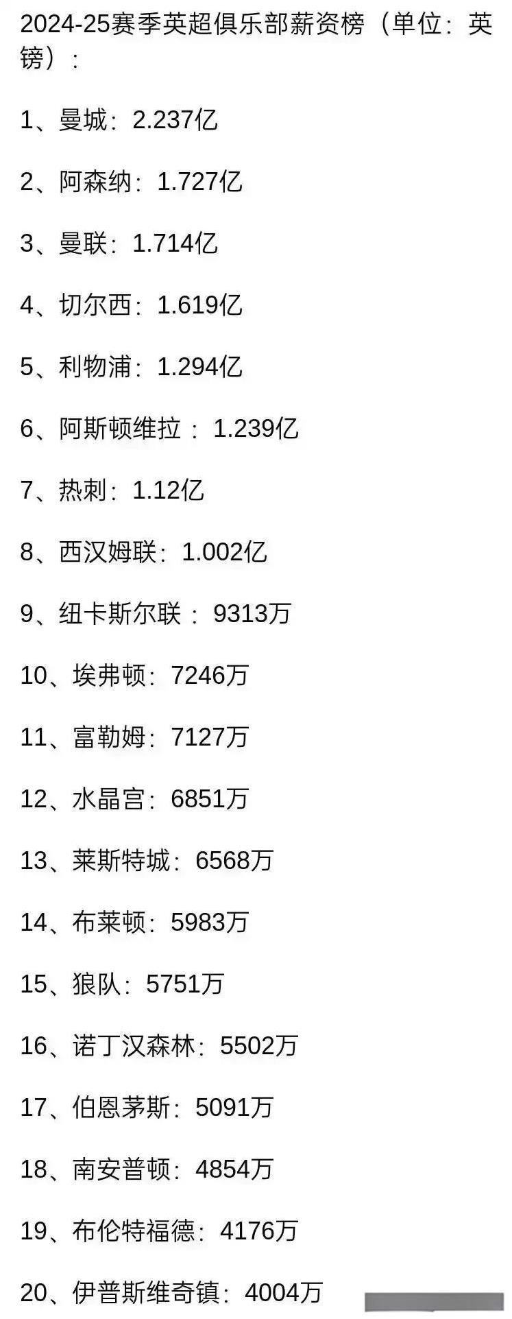 拜仁是真有钱啊,队内这么多年薪超1500万欧的。这在全球也是独一档的存在吧? 好在今年把萨内大帝送走了,二娃也离队了。不过现在又来了个迪亚斯,薪资1400万欧和萨内差不多。 要是这个夏窗再把磁卡和格纳布里送走,那就更好不过了。 明年诺伊尔估计也要退役了,又可以节省出一些资金买人了。 现在拜仁的薪资好像是全欧第二,仅次于皇马。我之前一直以为是英超球队的工资是最高的,没想到工资最高的还得是皇萨仁啊。