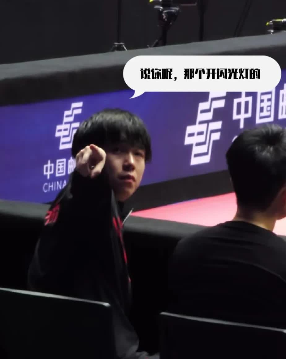 原来王楚钦怒指开闪光灯, 是这两位, 一个拿着手机, 一个拿着相机。