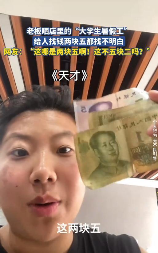 “离了个大谱!”山东,小男孩拿10元钱到超市买了7.5元的东西,没想到,收银台的大学生暑假工结账时,竟拿了2张一元和1张五元的纸币给男孩!幸好老板就在一旁,急忙拦住了暑假工。网友:店在哪?去帮你再考验一下! 牟视大观7月23日的一篇报道引起热议,网友也纷纷表示这家店到底在哪?致富就靠这个大学生了.... 李女士在小区附近开了家不大的超市,平时生意虽然说不上多火爆,但来来往往的熟客不少,生意一直还算稳定。 到了暑假,附近不少学生放假在家,李女士也习惯这个时候招几个暑假工帮帮忙,做些理货、上架、收银这种不太重的活儿。 那年夏天,李女士姨家的孩子也放了大学暑假,想着打点零工赚点生活费,顺便也能锻炼一下。 李女士心里一想,反正自己也要请人,不如就让这孩子来帮帮忙,既能省点人手,还都是自己人,彼此也放心。 小姑娘性格不闹腾,人也精明,说话办事挺利落。 李女士看她脑子转得快,想着她也上过大学,收银系统这些应该一学就会,就安排她到前台收银。 刚开始几天,由老员工在旁边带着,一边操作一边讲解。 小姑娘学得快,基本两天就能自己独立看台了。 她还挺有耐心,对顾客也有礼貌,碰上拿零钱、扫码慢的顾客,也不会不耐烦,做得算是很顺手。 李女士看在眼里也觉得放心,平时自己要去进货或者忙后仓的时候,前台就交给她看着,偶尔还会让她帮着理一理账、盘点点货,算是比别的暑假工多了一些信任和锻炼机会。 一开始一切都挺顺利,谁也没想到后面会出点事。 有一天,店里发生了一件让李女士哭笑不得的“小插曲”。那天午后生意不算太忙,她正坐在收银台旁边的椅子上歇一会,顺便翻着账本核对进货清单。 这时来了个小学生模样的男孩,手里攥着一张皱巴巴的十块钱,拿了点零食和饮料,总共七块五。他把东西放到收银台上,排队轮到他后,把钱递了过去。 站在收银台后的是李女士姨家的大学生外甥女,暑假过来打工的。她操作扫码枪一扫,收银系统自动跳出金额,然后她开始掏零钱准备找钱。按理说,找回两块五就行了,这种简单的账,小学二年级都能算清楚。可她低头在零钱盒里翻了一圈后,竟然伸手拿出两张一元和一张五元的纸币,叠在一起递给了小男孩。 这一幕刚好被李女士瞥见了,眼看那张五元正要递出去,她条件反射地一个箭步冲过去,手一伸拦住了递出去的钱,嘴里还带着点惊讶:“哎哎哎,这找的是啥钱呀?” 女孩愣了一下,还一脸疑惑地说:“不是找两块五吗?” 李女士一看她神情认真,反倒愣住了:“你这给的是七块啊!五块你当五毛给了?”说完自己都笑出了声。 旁边正在排队的顾客也跟着乐了,女孩这才反应过来自己搞错了,脸一下涨红,赶紧把钱收回来重新找。 事后李女士一边笑一边摇头:“我还想着她大学生,脑子肯定够用,结果这账还不如小孩算得快。”女孩自己也觉得不好意思,连连道歉,说是头晕眼花看错了。 从那之后,李女士没敢再让她一个人管现金收银,怕她再一次手一抖把钱“送出去了”。她自己也长了记性,找钱的时候都会小声念一遍,生怕再出错... 信息来源:新浪新闻