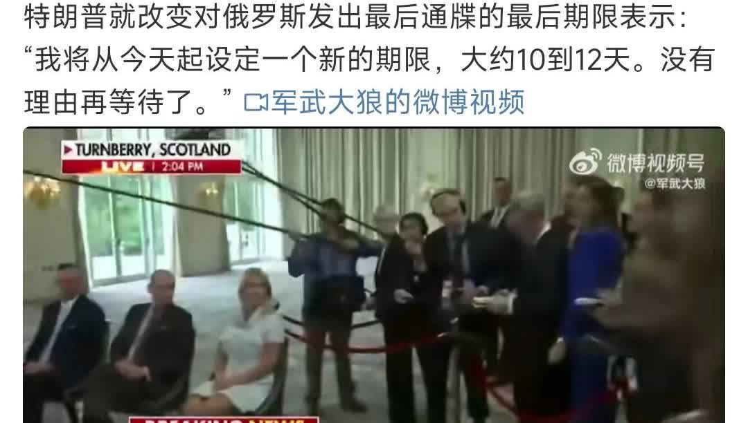 特朗普就改变对俄罗斯发出最后通牒的最后期限表示:“我将从今天起设定一个新的期限,