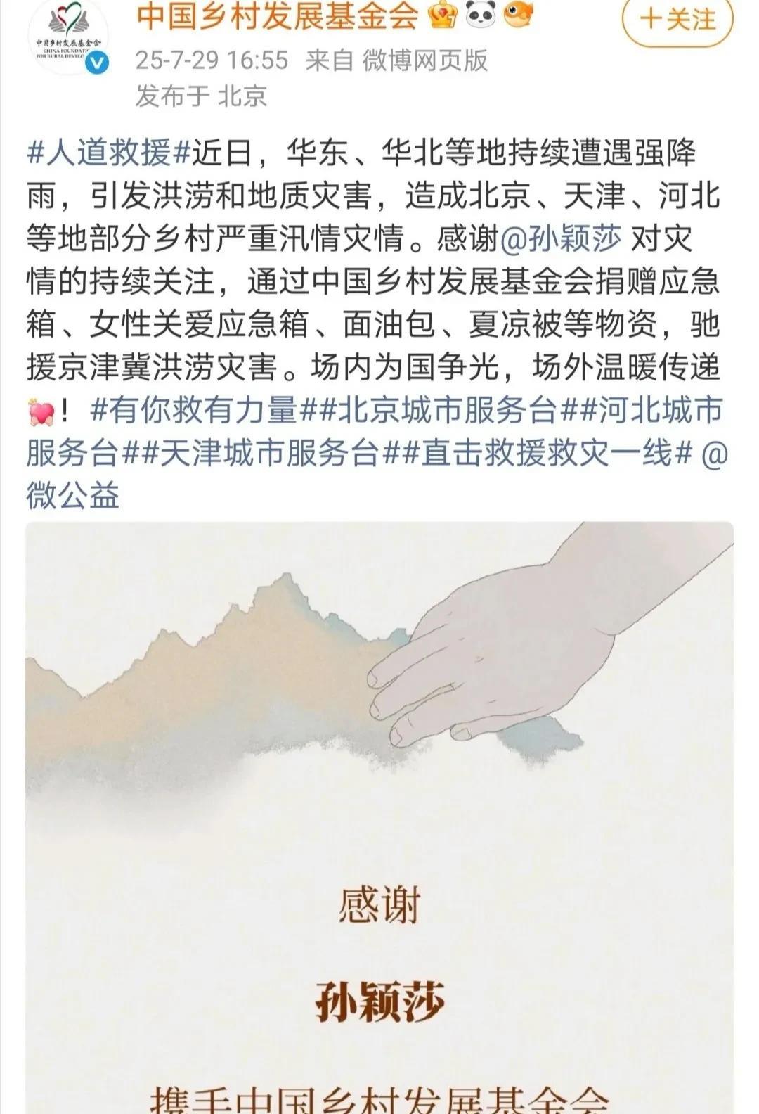 人美心善的莎莎,总是默默的捐款,从不多言! 莎莎就是这样一个好孩子,做的很多,说的很少。 在灾难面前,莎莎以无声行动诠释了优秀运动员的社会担当。 可以说莎莎让世界看到了中国女孩不仅赢在赛场,更赢在了心灵的温度上。