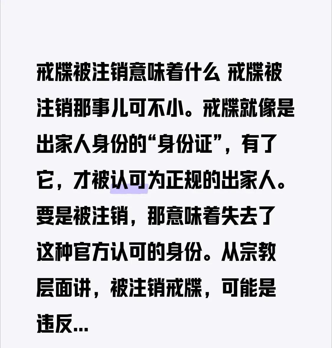 戒牒被注销意味着什么戒牒被注销,这意味着什么呢?这可不是件小事啊。戒牒啊,就如