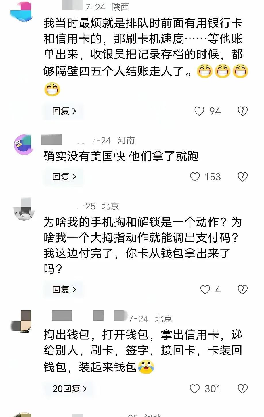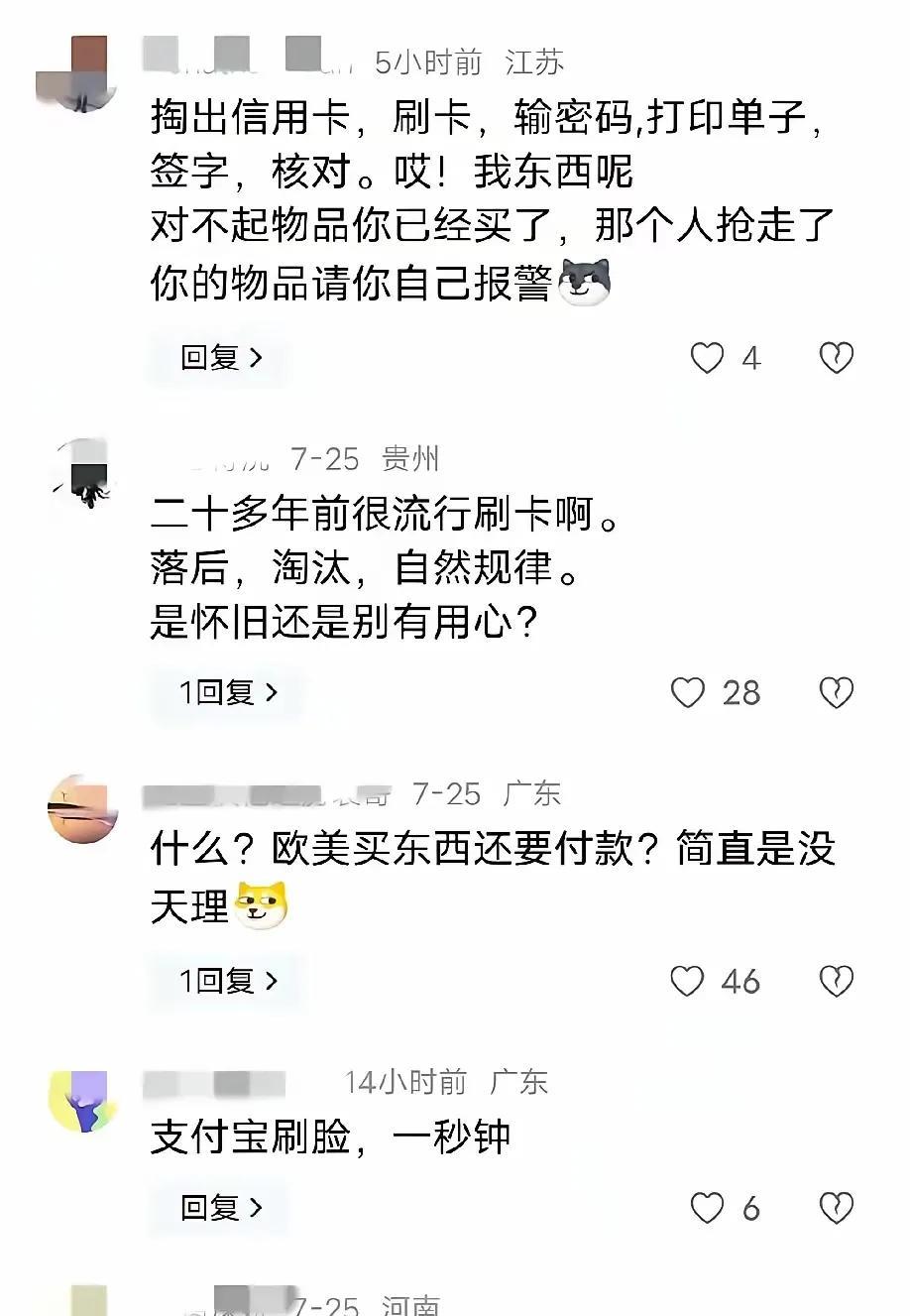 公知炮轰中国的手机支付效率低,买个东西要拿出手机解锁,打开某宝,扫码,输入密码,才完成支付,而欧美信用卡直接刷卡完成了! 网友对此有不同的看法。按公知的逻辑,信用卡支付更便捷,但细究流程会发现并非如此:从找袋、拿出钱包、打开钱包,到在几张卡中找到要刷的信用卡,再到判断商家机器是刷、插还是NFC感应,等待数据传送约2秒,最后打印小票并签名,整个过程共需9个步骤。 相比之下,手机支付的流程其实更简洁,从掏出手机解锁、打开某宝或某信,到扫码、通过人脸识别或输入密码完成交易,无需签字环节,步骤反而更少。 实际使用中,信用卡的便捷性也存在局限。比如在欧洲曾有经历,上厕所花1欧元却没零钱只能刷卡,偏偏信号不好,操作半天让人尴尬。而且信用卡免签名支付有额度限制,美国大概是50美金,这种快捷场景仅适用于线下小额正规商家,类似香港八达通的使用范围。 但面对线上场景或流动商贩,信用卡支持不足,操作麻烦且逻辑不一致。而某宝和某信支付则覆盖所有场景,逻辑统一且操作简单。此外,线下小额支付中,信用卡和八达通的安全性相对较差,即便信用卡有保护功能,处理成本也更高。 当然,西方信用卡也在发展,如今多采用芯片近距离感应付款,类似某宝推广的NFC模式,还能通过Apple/Google Pay存到手机上直接支付。但科技发展中,好东西值得认可,没必要为了贬低而忽视事实。 毫无疑问,目前刷脸和掌纹支付更为方便;若未来数字人民币普及,甚至能绕过中间商,减少额外成本,只是其尚未普及或许与此有关。总体来看,某宝和某信支付综合更优,若只是每天消费低于50美金或仅在线下正规商家消费,信用卡或许够用,但因此否定手机支付的效率,难免有故步自封、为黑而黑之嫌。#支付迷惑行为# #海外电子支付# #支付变迁# #刷卡机支付# #泰国手机支付#