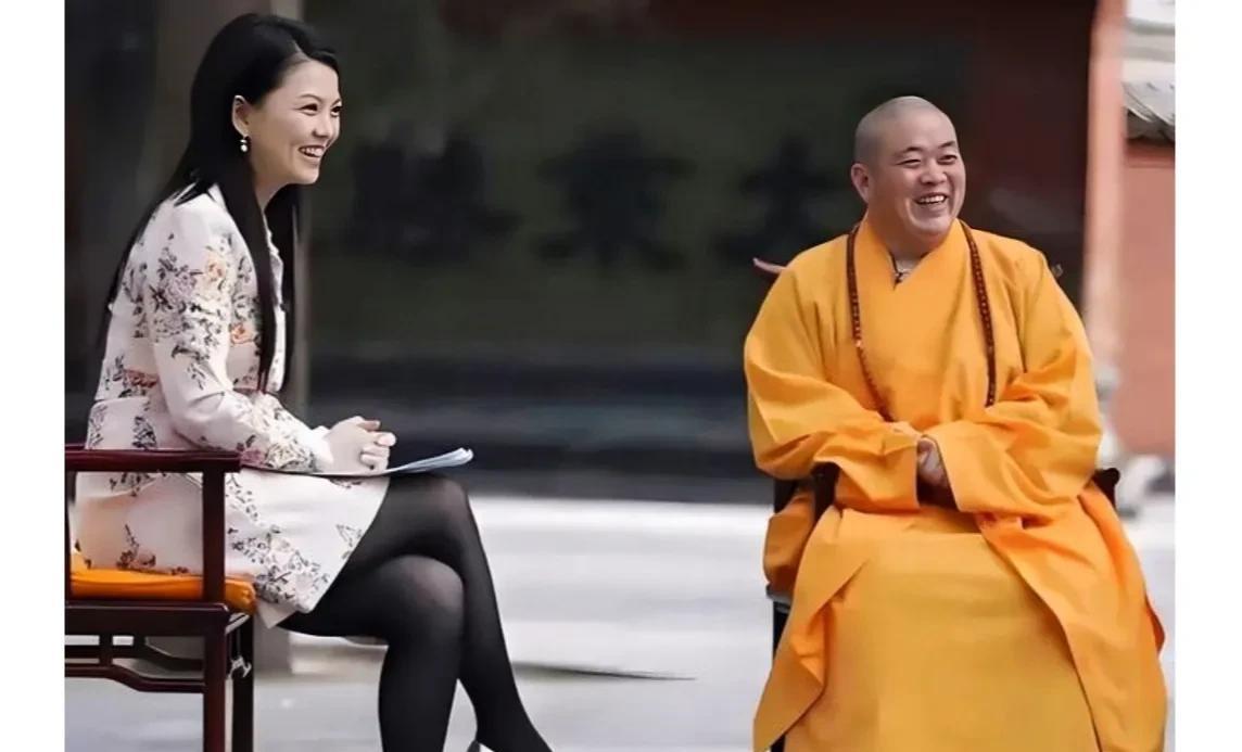 2008年,李湘在河南嵩山少林寺采访释永信时的合影,那时候李湘32岁,身段婀娜,气质优雅。释永信42岁,泰然自若,风度翩翩。采访中两人交谈甚欢,笑容满面。