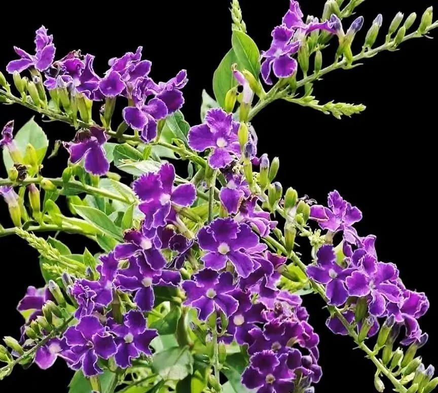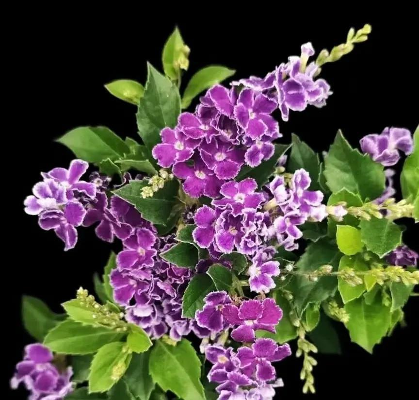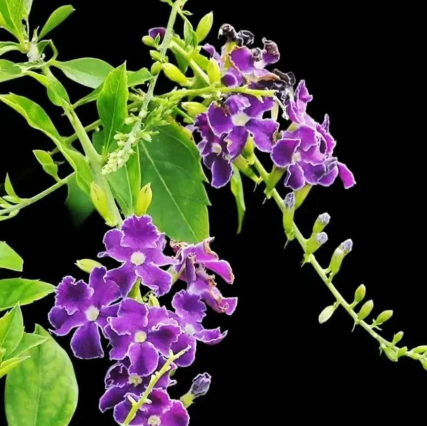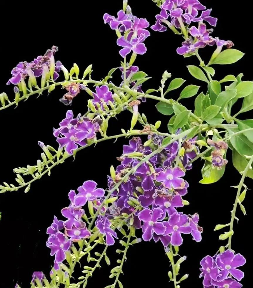 美丽的紫色精灵蕾丝金露 第一次在公园见到这种名叫蕾丝金露的小花,便被它优雅、紫色的花型所惊艳!它长着五枚紫色花瓣,花瓣边缘如彩妆勾线般的一圈白色花边,打造出它花容的精美浪漫,是花园里的一道美丽风景。 蕾丝金露花别名叫假连翘,原产热带美洲,在我国南北方都有栽培。花期在5-10月,在南方可以全年开花,种植广泛。因其花期长且花姿俏丽,枝条密集耐修剪,非常适合造型,用作绿篱植物实用又美观,所以它的小名叫篱笆树。在绿化、美化城市方面应用广泛,是现代园林难得的优良树种。 金露花浪漫的情调充满魅力,它独特的花型、淡雅的紫色花朵和亮丽的金黄色果实,花果俱美,观赏性很强。很适合用做盆栽、盆景及阳台或庭院布置。 金露花的果实还是味中药,《中华本草》中记载,其果实味甘、微辛,性温,小毒,具有截疟、活血止痛的功效,主治疟疾、跌打伤痛。 #头号创作者激励计划#