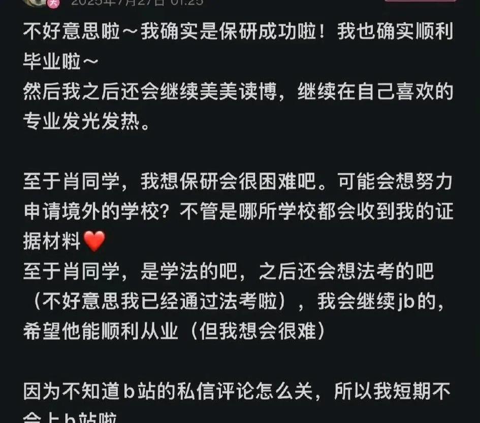 通过法考的她以后会成为杨律师吗?如果她成了律师,首先气不过的不是肖同学,而是肖的妈妈。 能带大一个患有特异性皮炎和过敏性哮喘的孩子有多不容易,有类似经历的母亲才会了解。 好不容易孩子考进武大,大一上图书馆学习,因为湿疹皮痒挠几下就被诬蔑,继而被网暴!肖同学心理创伤难愈,学业受阻,家里两位老人,爷爷气过世,姥爷植物人。作为肖同学的家长,很难不崩啊! 关键是这个女人得便宜还卖乖,发的帖子大有“粘到底”的意思,路人看着都生气! 法院都判了肖同学无罪了,还这么不依不饶。人家本科上的都糟透了,杨景媛又要嚯嚯人家读研,这女孩子心胸真不大啊! #头号创作者激励计划#