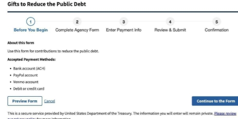 活久见!还有这样的操作?——美国财政部向美国公民发出呼吁,“请大家帮忙偿还已经超过37.1万亿美元的国家债务”!并提供了支付链接!据美媒消息,美国财政部已向美国公民发出公开呼吁,请民众帮助政府和国家偿还巨额国家债务,而民众的捐款可以通过PayPal和Venmo等支付平台进行,同时也提供了捐款支付页面和链接以及一步步如何操作的指引。 评一句:特朗普在“恢复美国经济”和“让美国再次伟大”方面做的简直太成功了,以至于现在要靠普通百姓来偿还美国的国家债务!简直荒谬至极!美国民主共和两党在财政支出上肆意妄为,“对等关税”政策推高国民消费支出,拱火域外冲突加重防务支出负担……这一切却让普通百姓买单。美国普通公民特别是底层民众本就生活不易,如此操作,凸显出的无疑是美国政府解决债务问题的无能与失责!