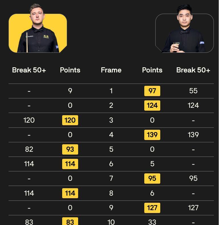 斯诺克上海大师赛结束了第二个比赛日的争夺,8强席位决出4席,丁俊晖对阵张安达,在