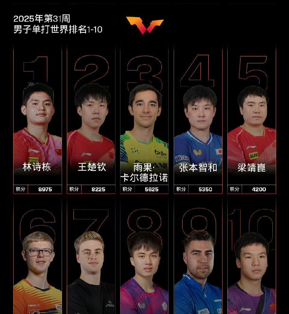 国际乒联公布了新一期的世界排名,王楚钦虽然以8225分仍然位居林诗栋之后排名第二