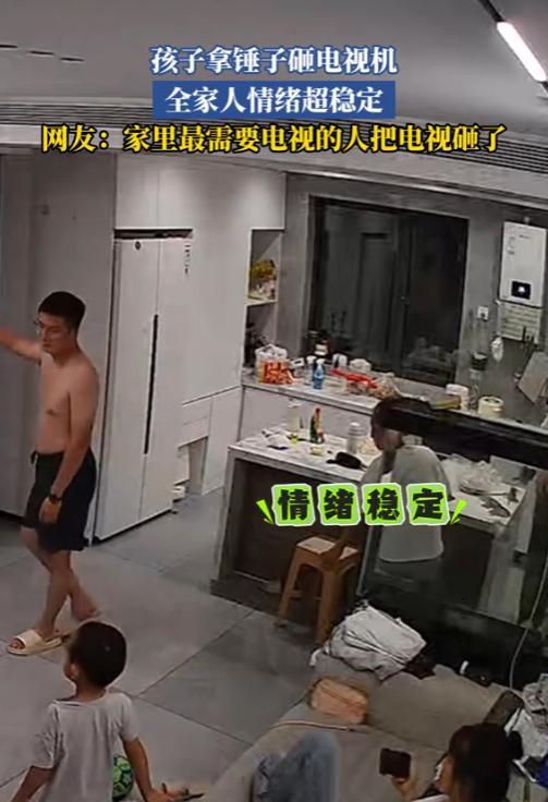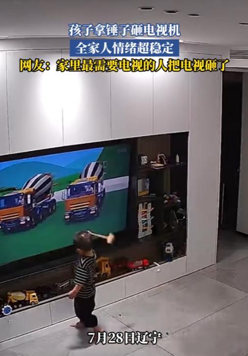 “笑不活了!”7月28日,辽宁,一小男孩拿着锤子,走到电视机面前,把电视给砸坏了,然而,全家人情绪超稳定,好像没有事发生,网友:家里最需要电视的人,把电视给砸了! 晚上,屋里空调开得正舒服,爷爷正在厨房坐着,爸妈在沙发上聊着天,突然,小男孩拿着小锤子,就走向电视机,“哐当”一声巨响,跟放鞭炮似的,电视黑屏,直接碎了一个大洞。 小男孩还举着个小锤子,站在电视机前面,地上全是碎玻璃碴子,那台新的液晶电视,屏幕裂得跟蜘蛛网似的,彻底没法看了,按说这时候,谁家不得炸开锅,可这家人愣是没一个急眼的。 没有人动,只是默默看着小男孩,这时,妈妈走了过来,也没有很生气,说了几句就走了,爸爸更是全程沉默的看着,好像这事情没发生一样,小男孩好像也知道自己闯祸了,举着锤子的手慢慢放下来。 他眨巴着眼睛看大人,见没人骂他,又咧开嘴笑了,这事被监控拍下来,孩子妈妈发到网上,评论区可热闹了,有人说:“这家人情绪也太稳了,换我家早开打了。” 还有人开玩笑:“平时就数这小家伙看电视最积极,结果他把电视砸了,真是大水冲了龙王庙”,不过评论区也吵翻了,有网友觉得这家人太纵容孩子:“三岁看老,现在不教,以后还了得?” 也有人觉得这教育方式挺好:“孩子又不是故意的,发火解决不了问题,冷静下来慢慢教,孩子才听得进去。” 其实,家里有小孩,谁还没遇到过这种糟心事,关键是咋处理,是劈头盖脸一顿骂,还是像这家人似的,先稳住情绪再说,说到底,每家有每家的过法,只要能把孩子教好,啥方式都值得琢磨琢磨。 信息来源:《孩子拿锤子砸电视机,全家人情绪超稳定,网友:家里最需要电视的人把电视砸了》海外观察