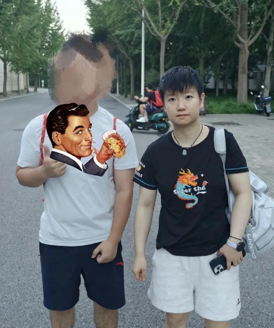 7.30新鲜孙颖莎合照。 湿漉漉的头发应该是刚训练完, 孙颖莎终于不穿她的七分裤